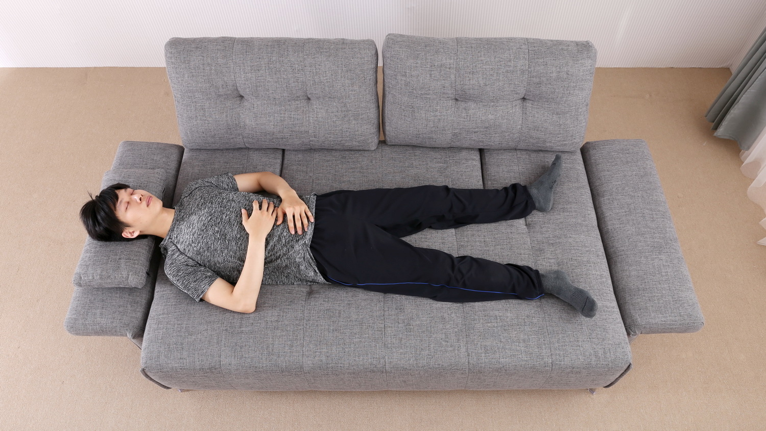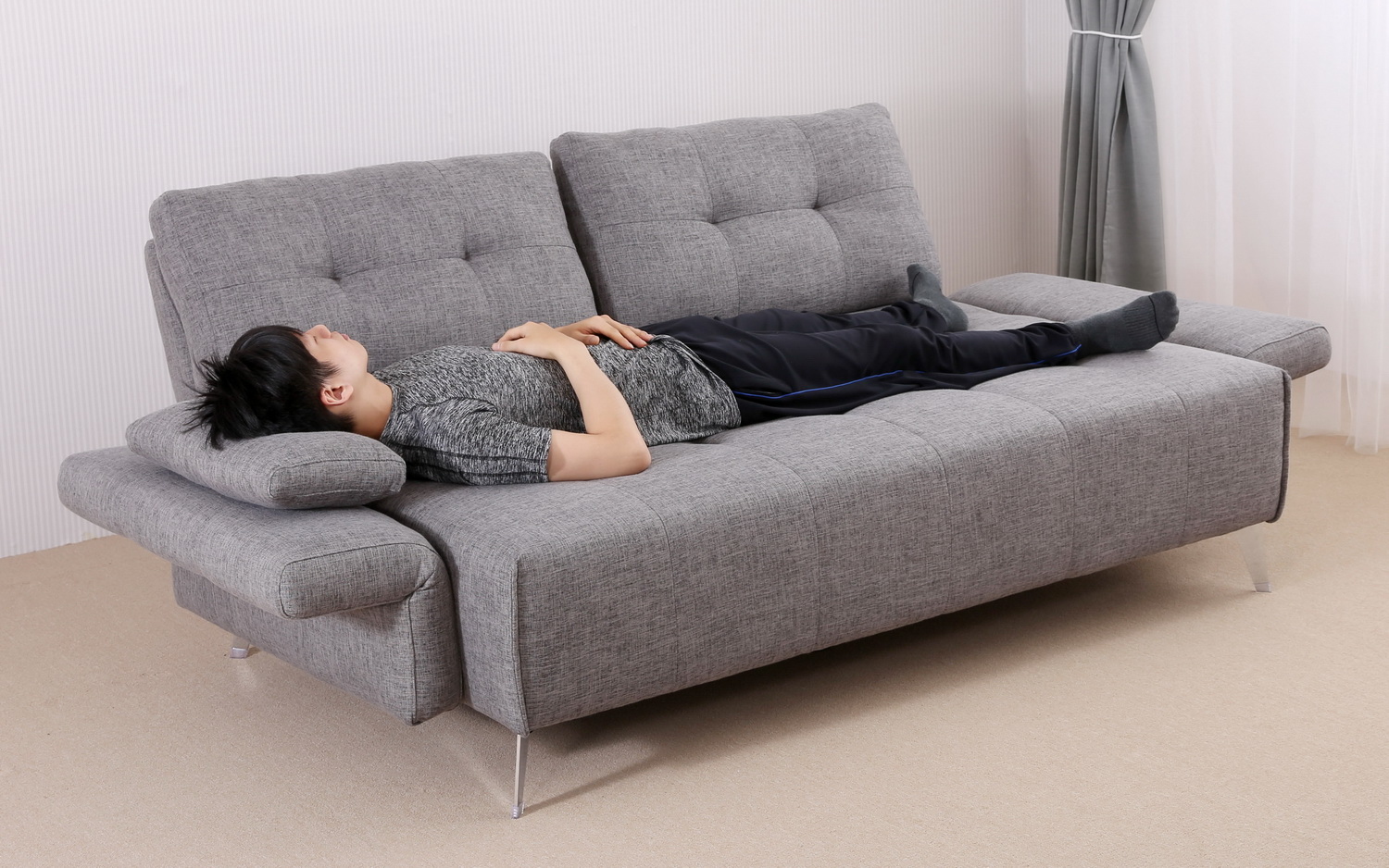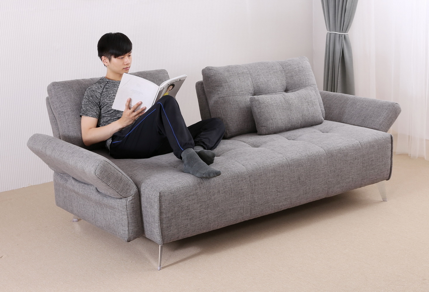 椅背可向後延伸增加沙發坐臥面積