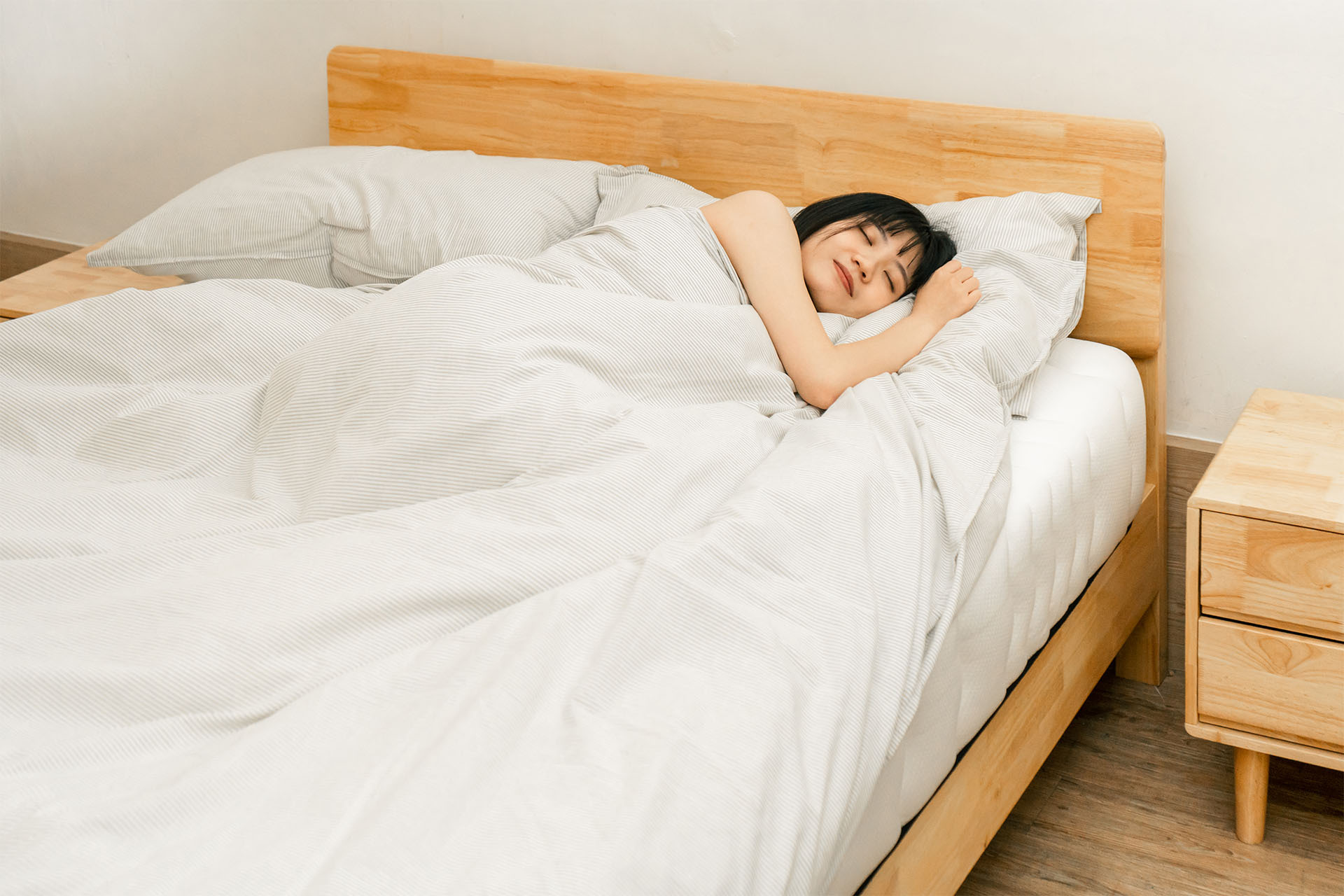 體型纖瘦的人施力於床墊的壓力較小,可挑選柔軟的床墊,軟綿又有包覆性,且本身就有足夠的支撐力來承托身軀重量,讓身體曲線與床墊更為貼合,若選擇太硬的床墊反而讓身體更加使力,造成僵硬無法放鬆。