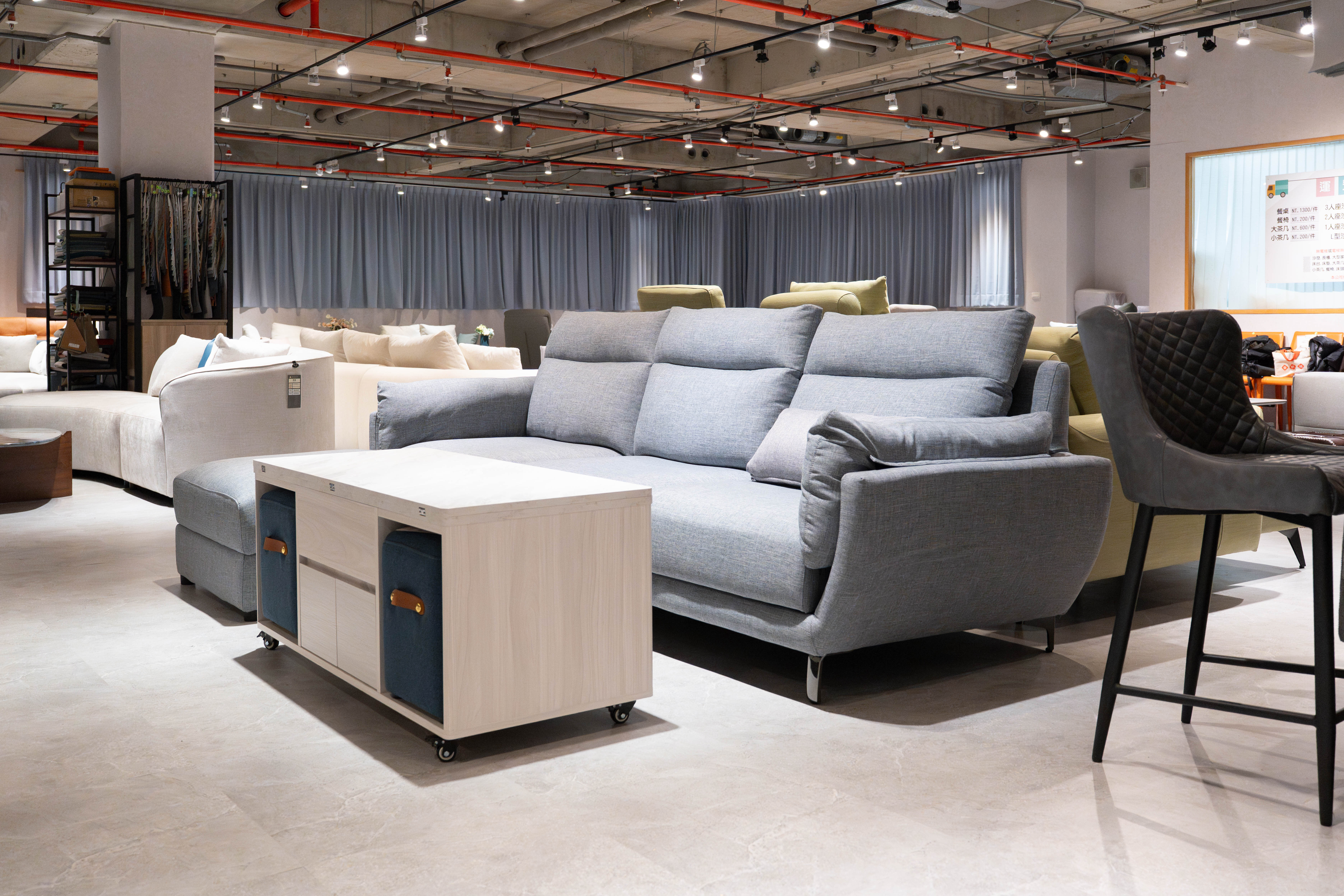 ▪︎ 北中南大型體驗館,實際試坐不踩雷:全台9處設有超過兩百坪的體驗空間,現場可以親自試坐不同款式、摸面料、感受坐感,還有專業家配師一對一協助,幫你找到最適合家人生活習慣的沙發配置。