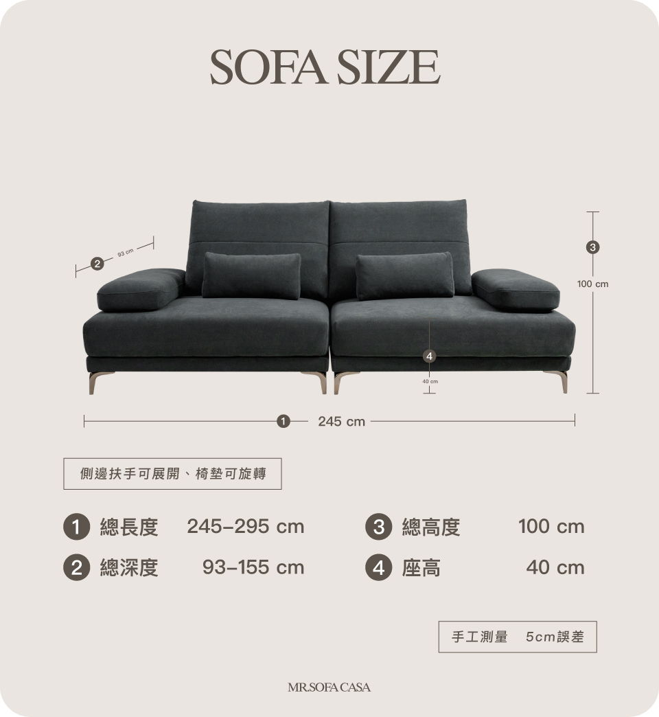 扶手未展開尺寸 長245/深93/高100公分